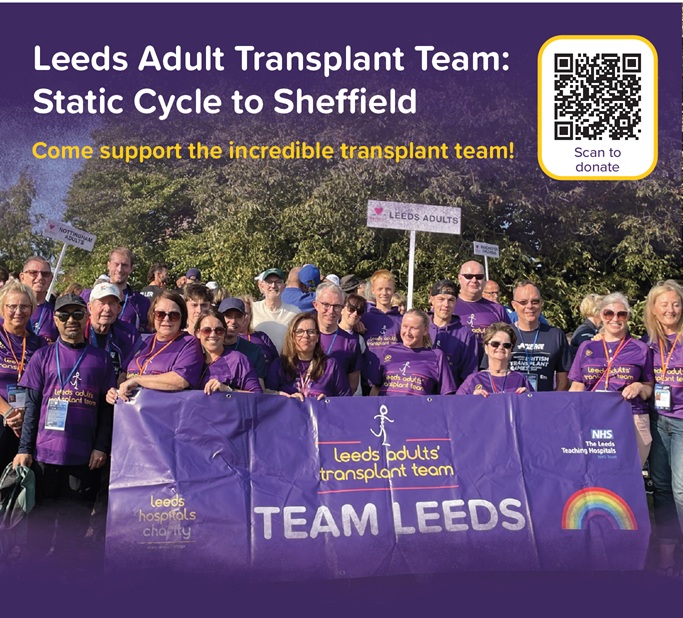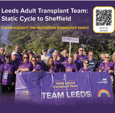 Our team will be static cycling the 108-mile round trip from Leeds to Sheffield - venue of the 2026 British Transplant Games!